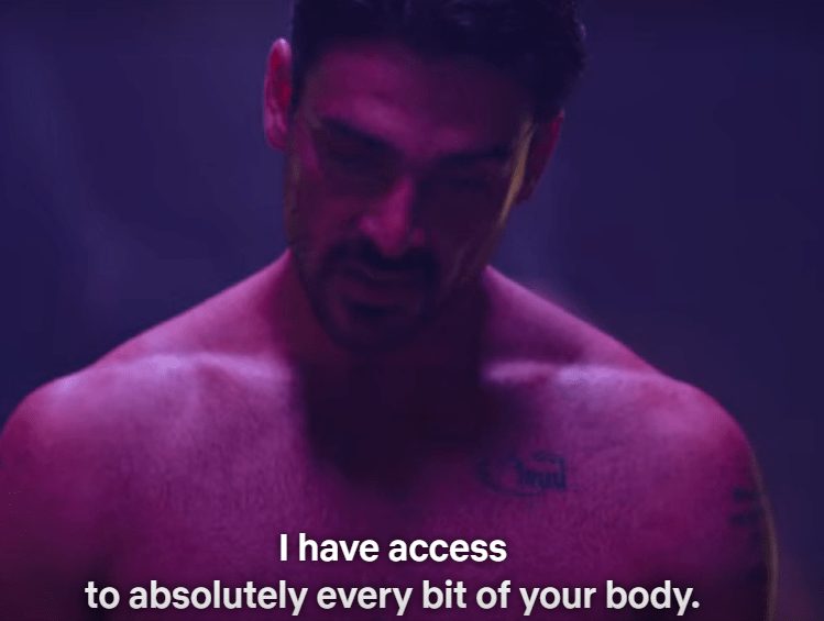 It’s around this time that I realize that this movie would’ve been way better if Laura and Massimo established a dom-sub relationship, in which Laura would obviously be the dom, as she clearly thrives on acting like one and Massimo would be taught to relinquish control in a controlled environment. Unfortunately that’s not what this story is, so we just get Laura smirking and Massimo grabbing by the throat.