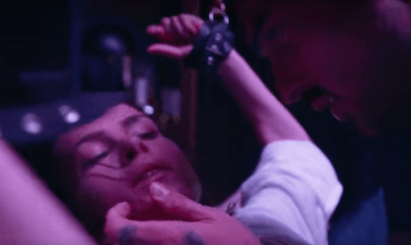 She wakes up in this castle, and while trying to find a way out she bumps into Massimo, the main guy, and the head of the mob. It has to be said that in a movie like this, some manhandling is to be expected, but he’s, like… violent. He throws her into chairs, twists her arm behind her back and slams her face first into the brick wall, etc.